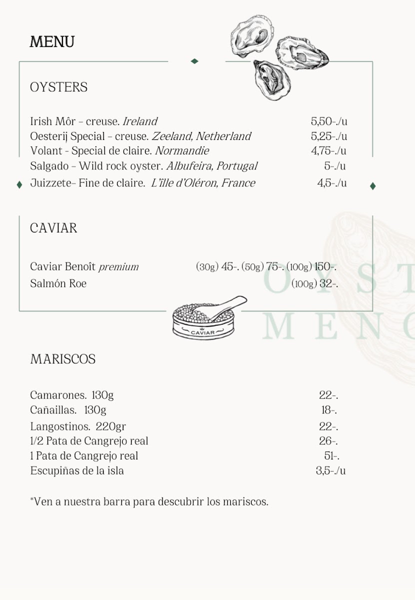 Welcome to Oysters Menorca, a refined gem nestled in Maó, Spain. This exquisite spot is acclaimed for its simple yet elegant ambiance, perfect for enjoying a light, memorable dinner. The menu features an impressive selection of fresh oysters, including exceptional Irish varieties, complemented by unique sides like cucumber sauce that elevate each bite.